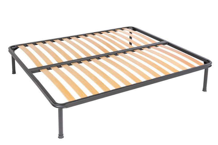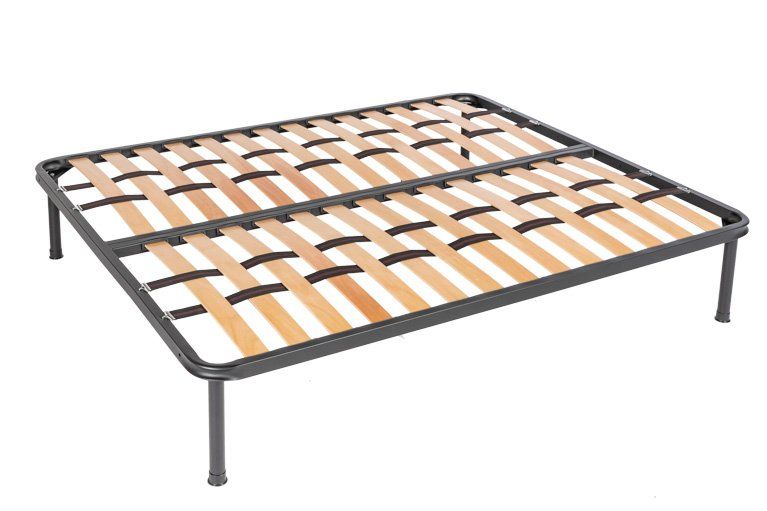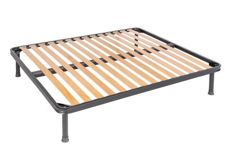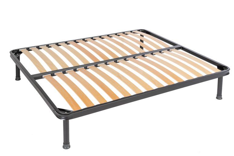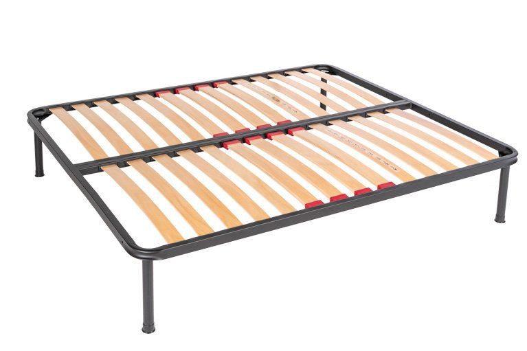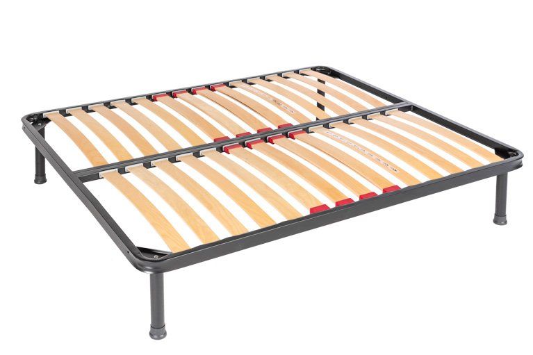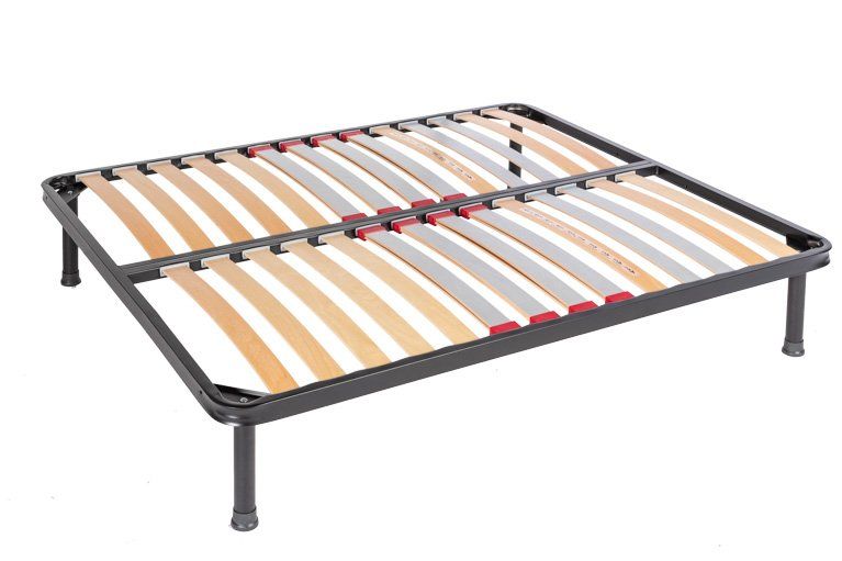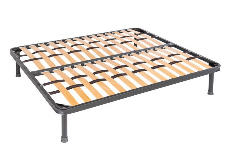 legno larghi mm68. La versione matrimoniale è predisposta per accogliere 28+8 listelli in legno larghi mm.68 e con Doppia barra centrale che divide i listelli e irrobustische la rete. Piedi a rondella avvitabili con tubo diametro 50 mm, dotati di tappo antiscivolo. Verniciatura a polveri atossiche.
